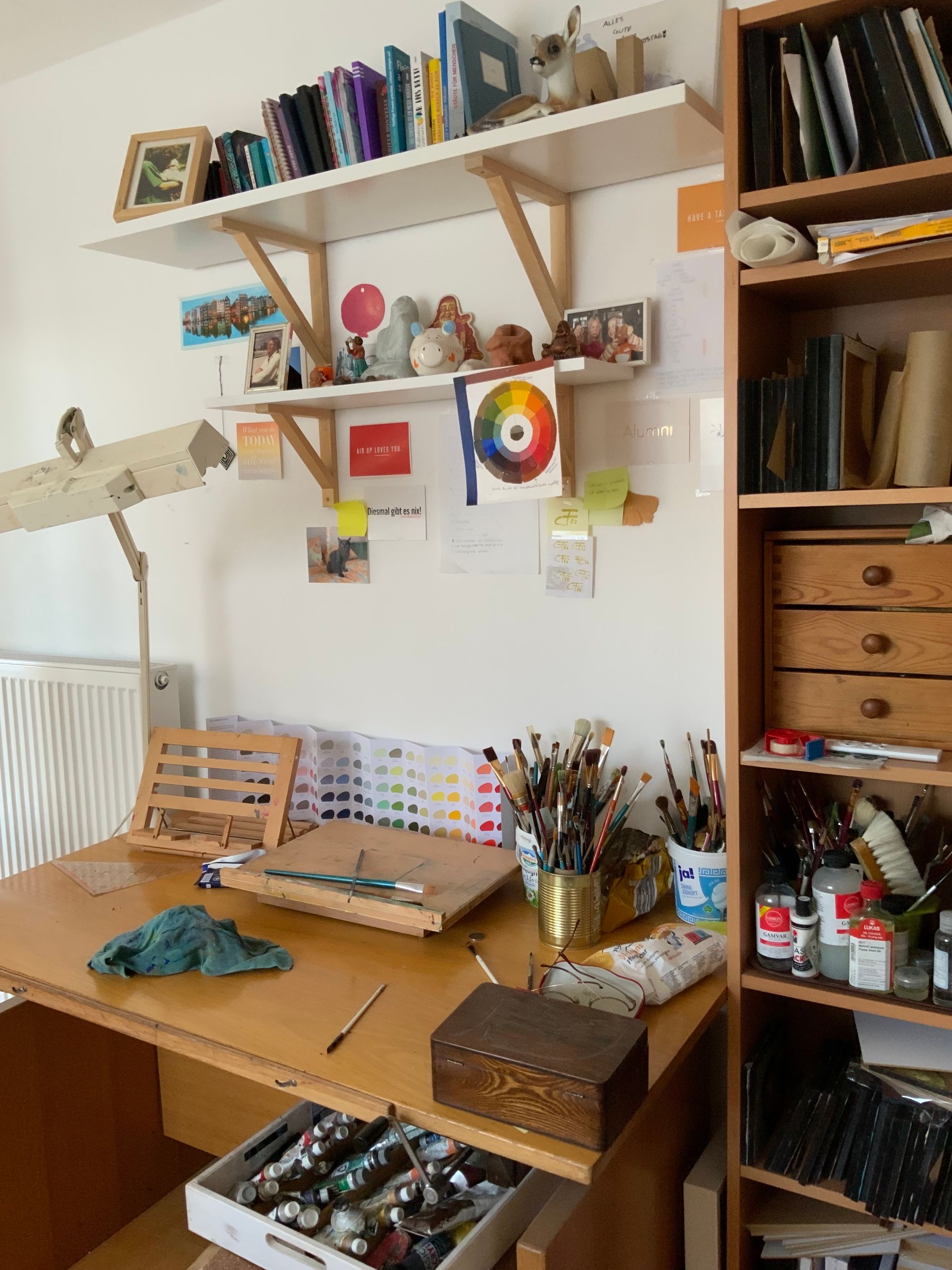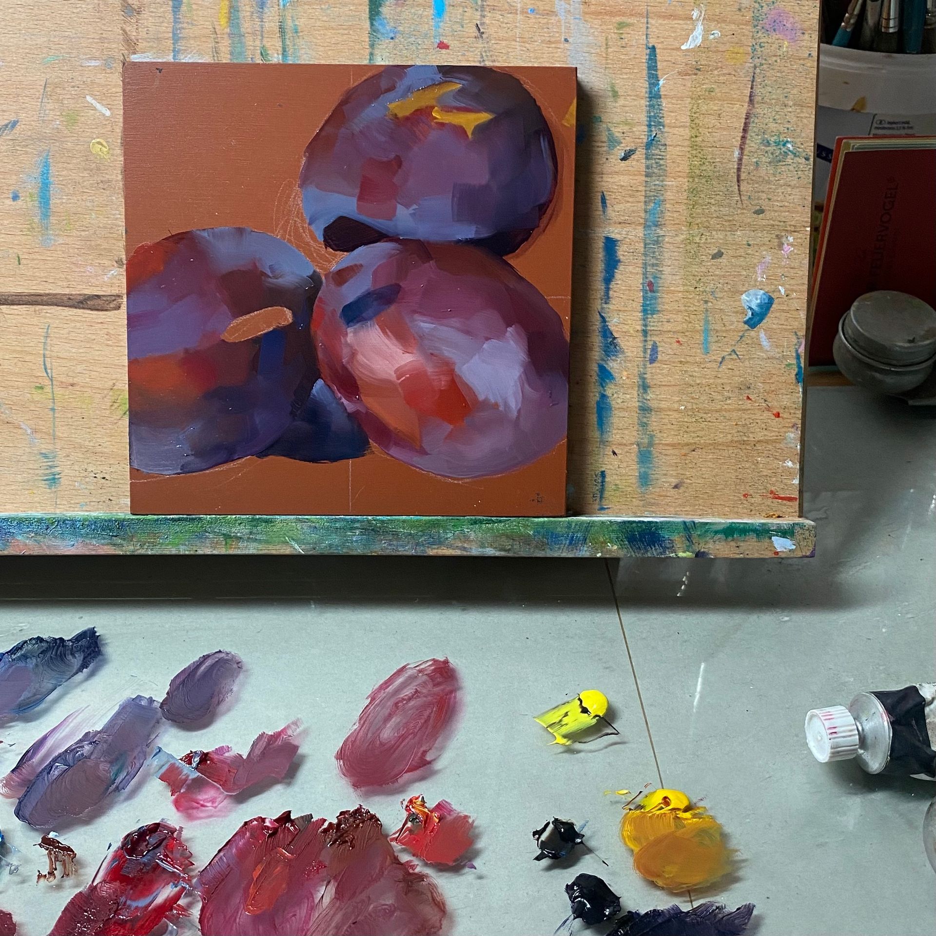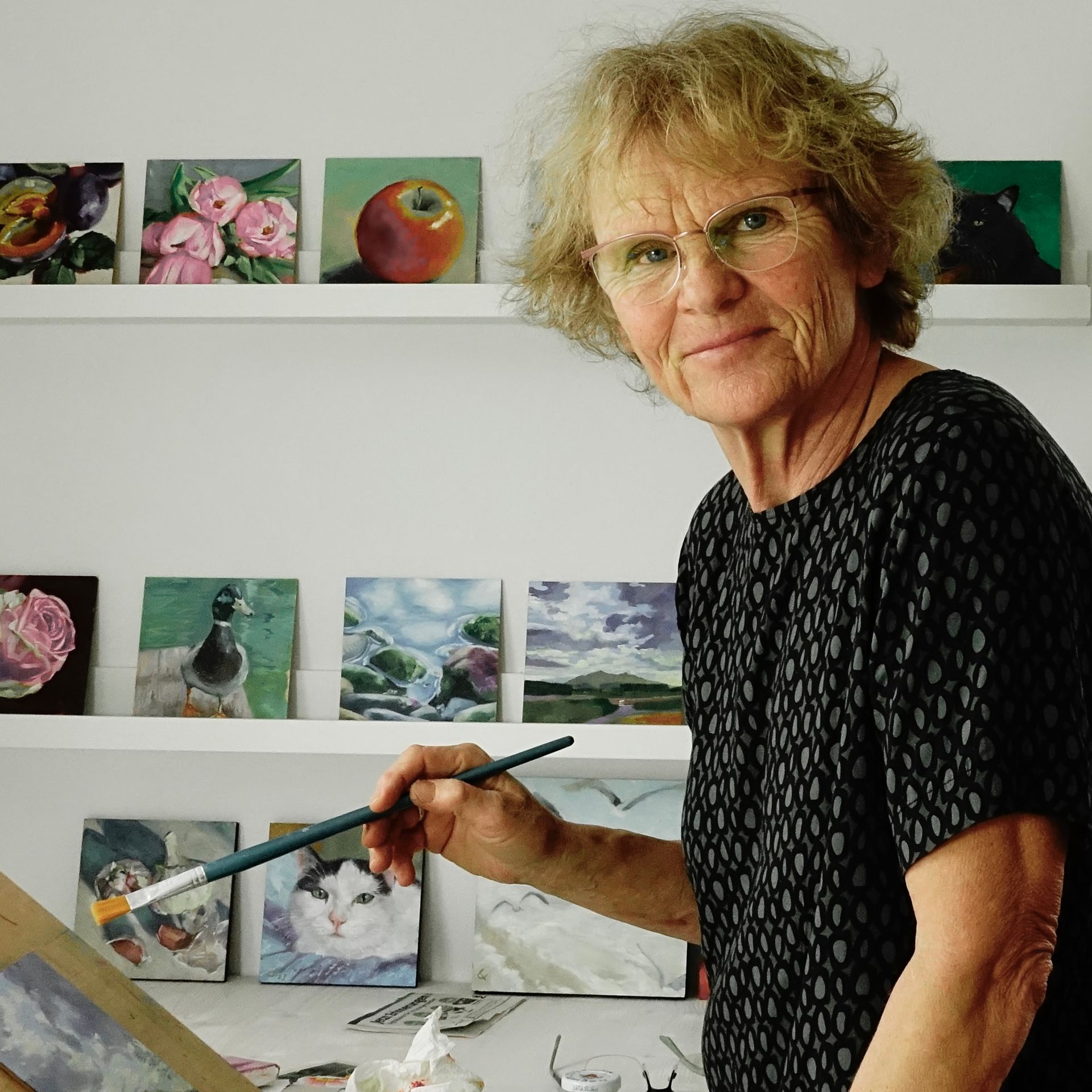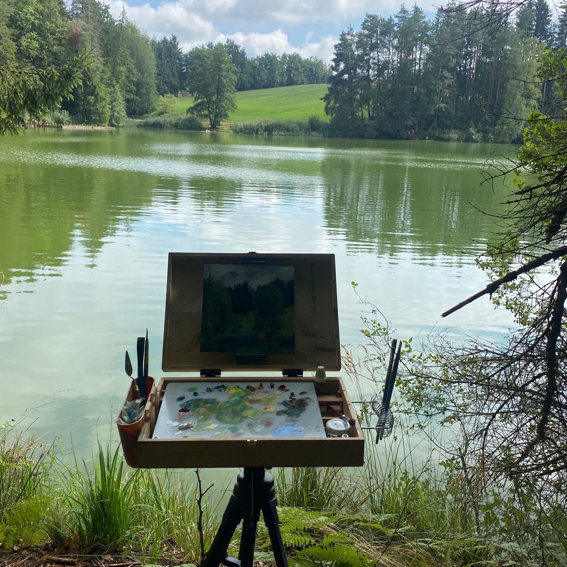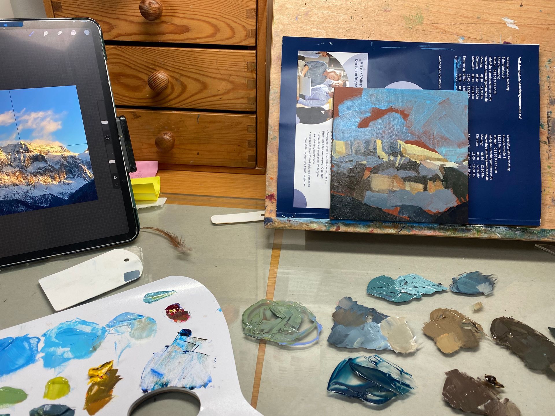bevorzugten Material Ölfarben auf kleinformatigen MDF-Malplatten hat auf mich eine befreiende Wirkung. Die tägliche Auseinandersetzung mit Farbwirkung, Komposition, Tonwerten und Bildthemen gehört nun schon lange in meinen Tagesablauf und macht mich sehr zufrieden. Der Malprozess an sich ist das Ziel. Oft bin ich selbst vom Ergebnis überrascht.